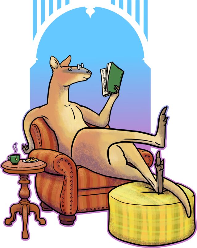 An isotopic study indicated that an extinct short-footed kangaroo had a smaller than expected home range. It probably just had a pile of good books, a comfy chair, and plenty of snacks. Inspired by Laurikainen Gaete et al. (2025) “Megafauna mobility: Assessing the foraging range of an extinct macropodid from central eastern Queensland, Australia.” https://journals.plos.org/plosone/article?id=10.1371/journal.pone.0319712